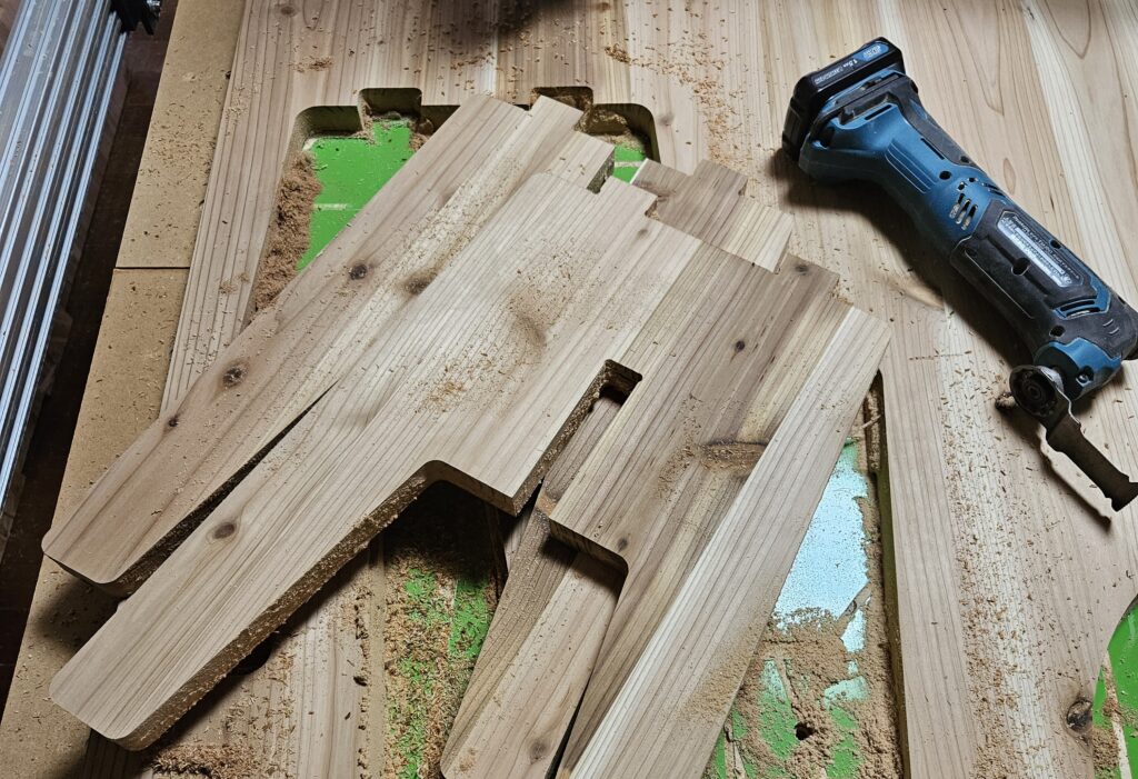 CNCで加工したパーツを板から切り離したり、アタッチメントでやすりがけをするのに利用しています。もともとは医療用のギプスカッターから派生した工具らしく安全性が高いのが特徴です。先端のアタッチメントを交換することで木材から金属まで加工可能なので一台あるだけでとても便利です。