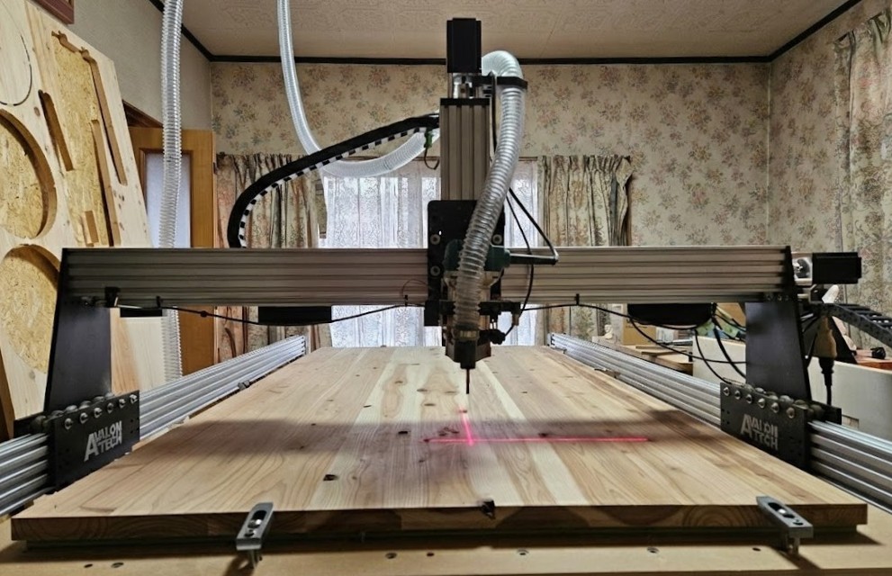 Avalontechから販売されている大型CNCモデルです。サブロク板を加工できるサイズなので、仕入れてきた板材をセットしてすぐに加工が可能です。オープンソースで設計データなどが公開されており、加えてユーザー同士のコミュニティサイトがあるため使い方や加工条件などを共有できます。工房開設からずっとお世話になってる機械で、何より自分で組立たこともあり愛着もひとしおです。組立時や加工の様子も機会があればいずれこちらに載せたいと思います。